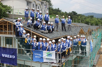 볼보건설기계코리아의 ‘사랑의 집짓기’ 행사는 2001년 충남 아산에서 열린 ‘지미 카터 특별건축사업’에서 20명의 임직원들과 시작해 14년째 한결같이 이어오고 있는 대표적인 사회공헌활동이다.