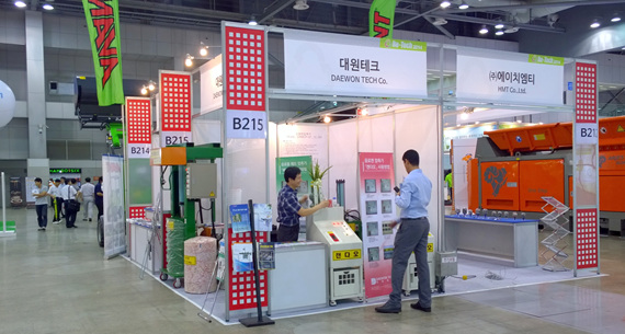 제7회 '국제자원순환산업전'이 경기도 고양시 킨텍스에서 2~4일까지 3일간 열리고 있다. 경기도 김포시 양촌읍 양촌산업단지에 위치한 재활용 설비 업체인 대원테크는 이번 전시회에서 성능을 향상한 캔 압축기와 페트 압축기를 비롯해 쓰레기 종량제 압축기, 소형 캔 압축기 등을 전시했다.