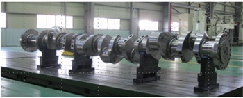 ‘4행정 일체형 크랭크샤프트’는 흡입-압축-폭발-배기 4행정으로 구성돼 있다. 선박엔진의 크랭크케에스 내에 설치돼 피스톤의 왕복운동을 회전운동으로 바꿔 프로펠러를 구동시켜 주는 핵심부품이다.