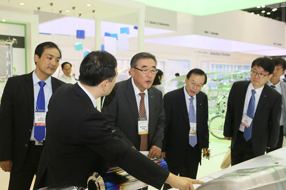 24일 경기도 일산 킨텍스에서 개최된 국제 철강·비철금속 산업전 개막식에 참석한 VIP들은 개막식 이후 포스코와 현대제철, 세아제강, 고려아연, 풍산, LS-NIKKO동제련 등 철강·비철 주요 업체 부스를 방문해 주요 전시 제품을 둘러보고 환담을 나눴다.