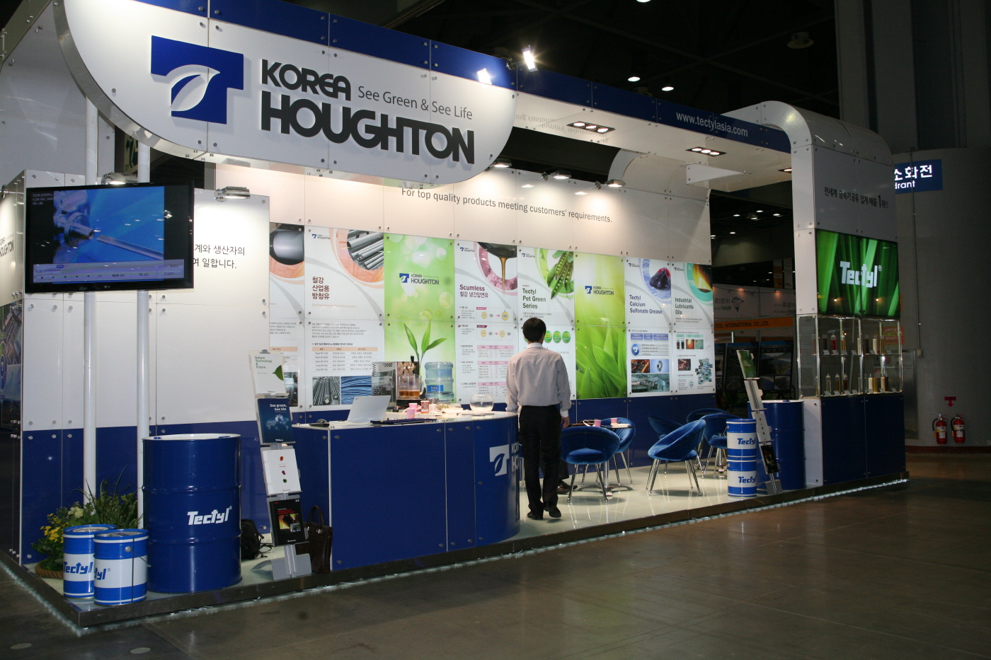 한국하우톤은 주력 제품인 Scumless 철강 냉간압연유를 바탕으로 한 환경친화형 절삭유, 난연성 유압작동유 및 산업용 그리스, 철강용 방청유, 그리스, 그리고 식물성 오일을 베이스로 한 환경친화형 절삭유 등을 출품했다.