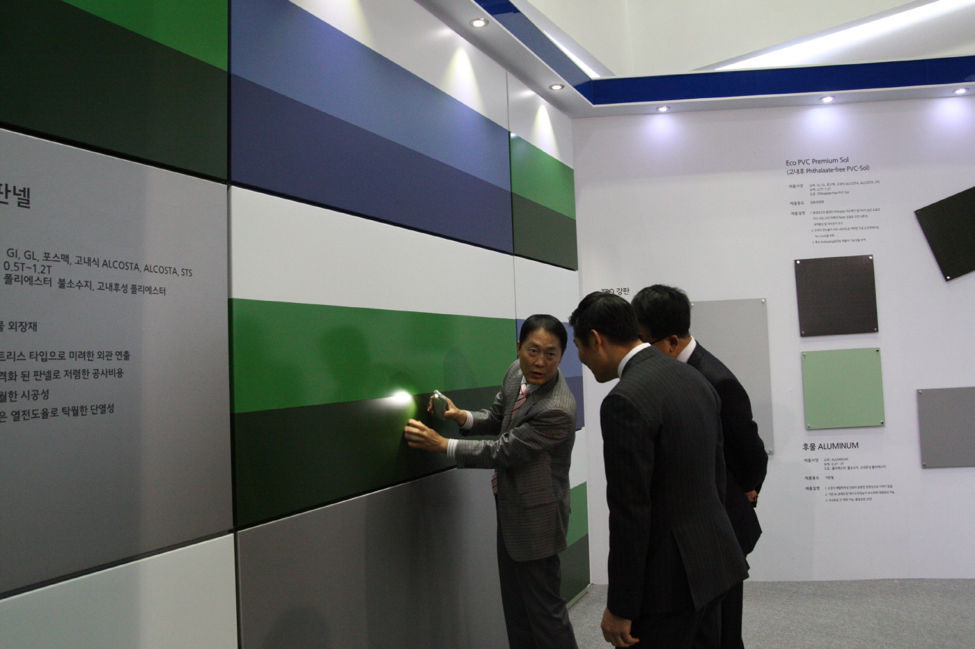 이번 한국건축산업대전 개막식에는 신정석 사장이 관계자들과 함께 직접 테이프 커팅에 참여하고 부스를 방문하는 고객들에게 다색강판의 우수성과 개발 과정 등을 설명했다.