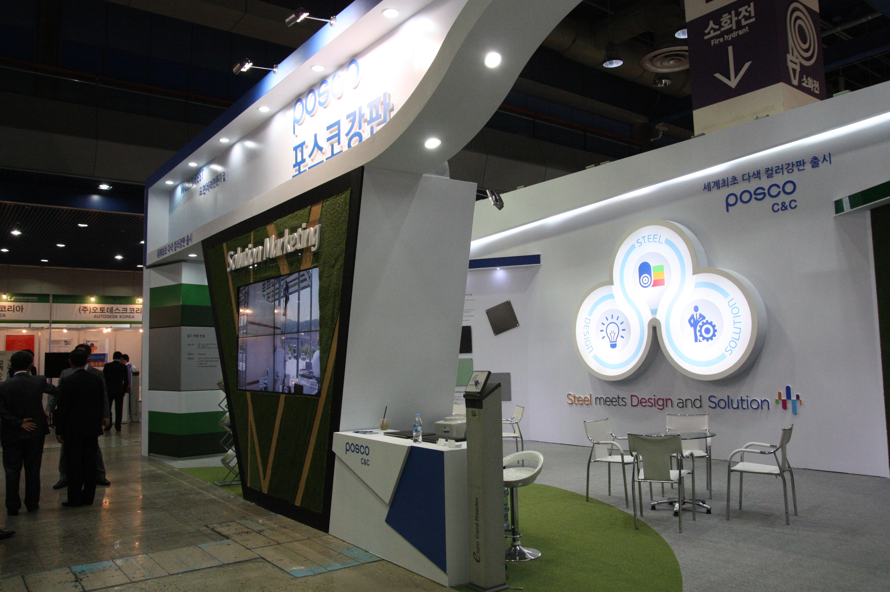 이번 행사에서 다색강판은 ‘Steel meets Design & Solution’이란 타이틀 아래 Function(소재로서의 더 나은 기능성), Design(더 창조적인 디자인 패턴의 구현) 및 Solution(건축주에게 더 큰 만족 부여)으로 나누어 각 기능을 소개하고 Total Solution Provider로서의 면모를 보여주고 있다.