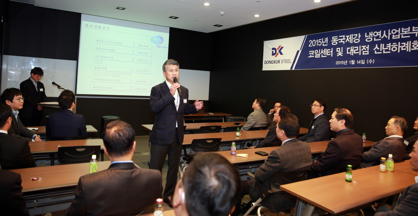 동국제강 냉연사업부는 14일 페럼타워에서 코일센터 및 대리점 사장단 33명이 참석한 가운데 ‘동국제강 냉연사업본부 스틸서비스센터 및 대리점 신년 하례회’를 개최했다고 밝혔다.