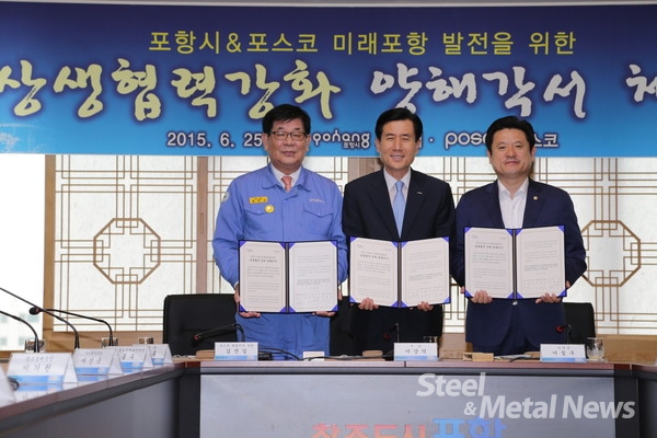 지난 25일 포스코와 포항시는 동반성장 및 상생발전을 통해 지역경제에 활력을 불어넣고 새로운 성장 동력 창출을 통한 경제위기 극복에 상호협력하기 위한 양해각서를 체결했다.