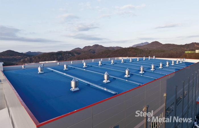 지붕재 패널은 기존 데크판넬에 파라딘(Paradene) 공법을 이용해 두 번의 공사를 통해 방수공사가 이뤄지던 것을 일체형으로 전환한 제품이다. 이 제품의 경우 시공성이 뛰어나 한 번의 공사로 모든 것을 끝낼 수 있다.