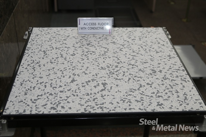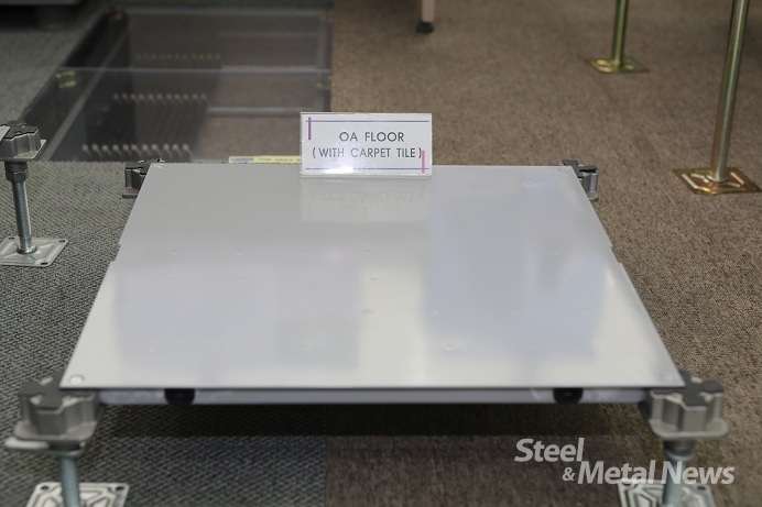 OA Floor는 업무용 시설에 주로 사용되며 마감재는 고객사들이 원하는 타일을 적용해 생산할 수 있다. 이 제품은 최대 월 144,000PCS 가량 생산할 수 있다.