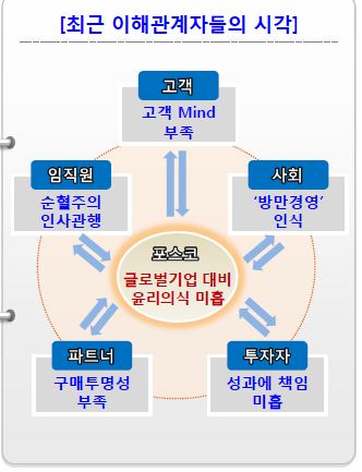포스코(회장 권오준)는 강력한 쇄신을 통한 윤리적 경영문화를 선도한다는 방침이다.