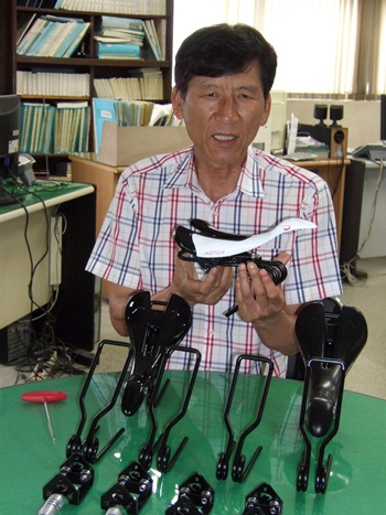 29일 시화공단 공장에서 만난 뉴메탈텍 성윤창 사장은 “보통 자전거 안장 1개당 스테인리스봉강과 탄소강봉강 제품은 800~900g이 투입되며 총 52개 부품의 완성품이라고 말했다.
