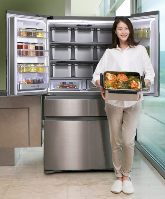 삼성전자가 10일 스테인리스 소재의 ‘메탈쿨링김치통’을 탑재한 ‘지펠아삭’ 김치냉장고를 출시했다.