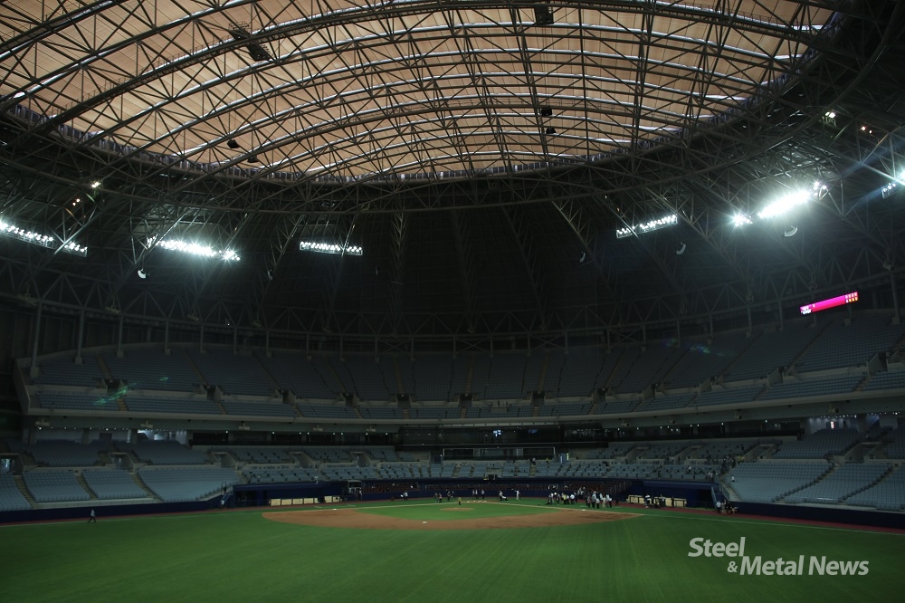 그 중에서도 백미는 구장을 폭 감싸안은 완전돔(Full-Dome)이다. 완전돔을 가능케 한 구조와 그 구조를 완성한 철강재에 대해 알아본다. <편집자 주>