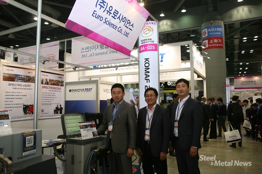 금속 성분 분석기 공급업체인 유로사이언스(대표 김문일)는 28일부터~31일까지 고양시 킨텍스에서 열리고 있는 '2015 한국산업대전(국제제어계측·시험검사기기전)'에서 실험실용·이동형·휴대용 등 다양한 금속 성분 분석기를 전시하고 있다.