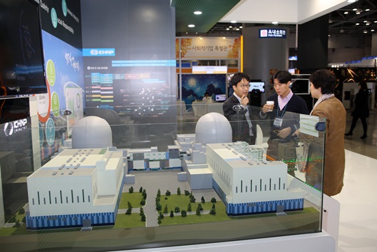 ▲한국수력원자력은 5중 차폐형으로 미국 내에서 여객기가 충돌을 해도 원자로 벽을 뚫을 수 없는 구조로 안전한 한국형 표준 원전 APR 1400을 소개했다.