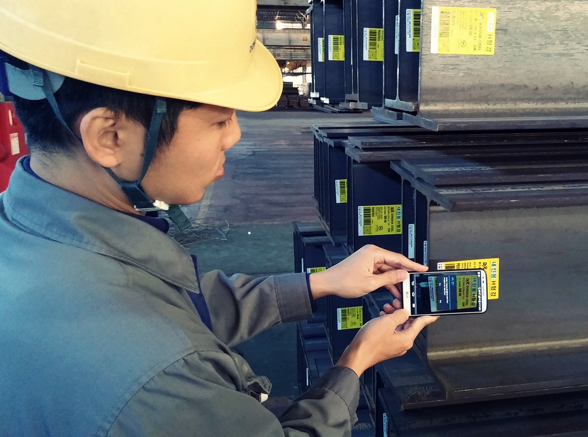 스마트폰의 QR코드 리더기 앱으로 스마트 라벨의 QR코드를 인식하면 형강과 관련된 정보를 모아둔 ‘모바일 형강 미니 홈페이지’로 접속된다.