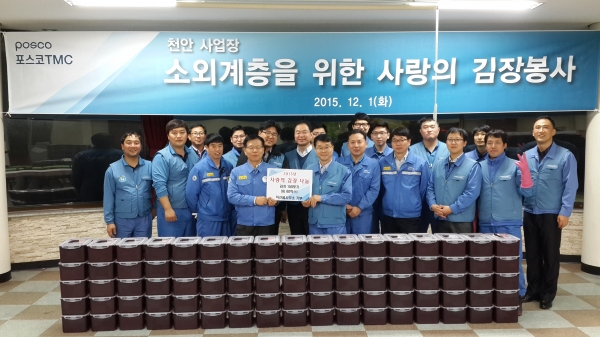포스코TMC는 4년째 매년 김장김치를 어려운 이웃에게 전달해오고 있으며, 올해부터 다문화가정과 소년소녀가정(5년 동안) 등 2명에게 매달 각각 20만원과 30만원 등 50만원씩 후원하고 있다.