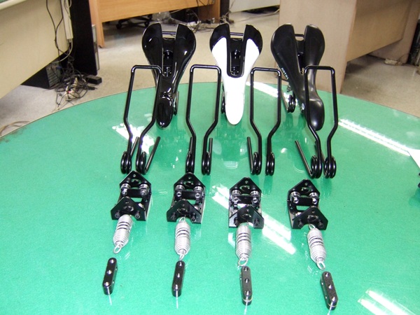 자전거용 안장 원 소재는 포스코에서 생산되는 SUP 9 스테인리스 선재를 갖고 인발과 직선절단, QT 열처리 후 연마공정을 거쳐 스프링강이 생산된다.