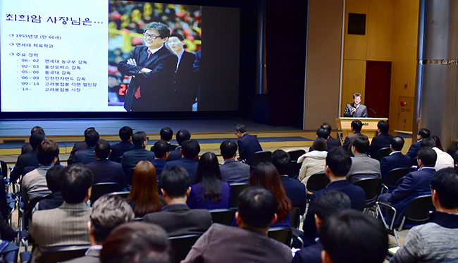 과거 대학농구계의 명장으로 활약했던 최 사장은 이날 강단에서 농구팀을 이끈 경험을 바탕으로 “농구팀, 그리고 회사에서 구성원들이 최상의 실력을 발휘할 수 있도록 돕는 것이 감독과 리더의 역할”이라고 강조하고 조직을 운영하는 그만의 리더십 철학에 대해 이야기했다.
