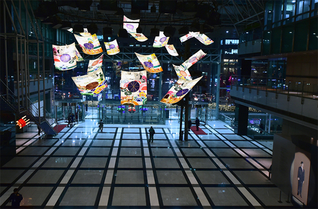 포스코센터 1층에 방패연 형상 작품 설치 및 경관조명 불 밝혀