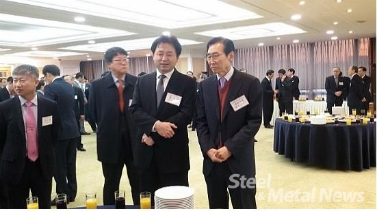 한국철강협회 강관협의회 현회장인 엄정근 하이스틸 사장과 차기회장예정자인 이진철 휴스틸 사장이 2016년 1월 11일 포스코센터에서 열린 ‘철강업계 신년인사회’에서 한 자리에 섰다.