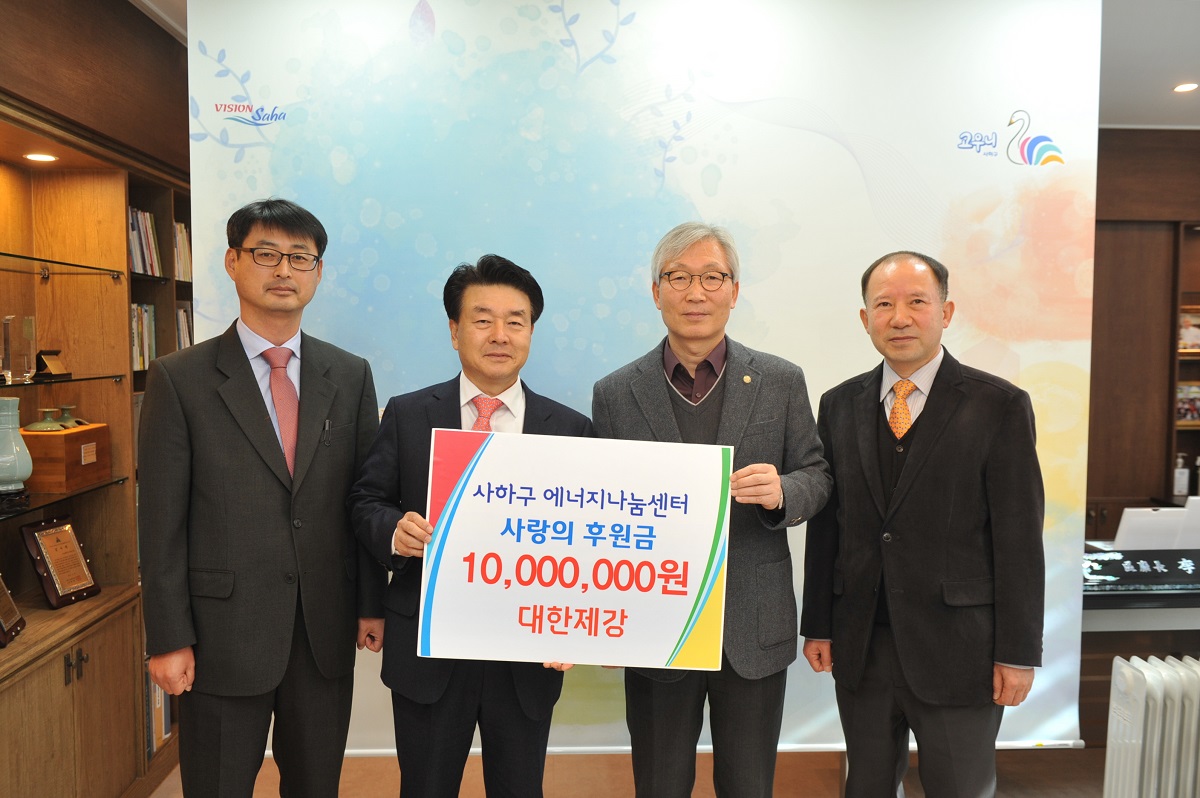 대한제강(대표 오치훈)은 지난 15일 부산 사하구(구청장 이경훈) 에너지 나눔센터에 에너지 취약계층에게 냉난방기를 지원하기 위한 사랑의 후원금 1,000만원을 전달했다.