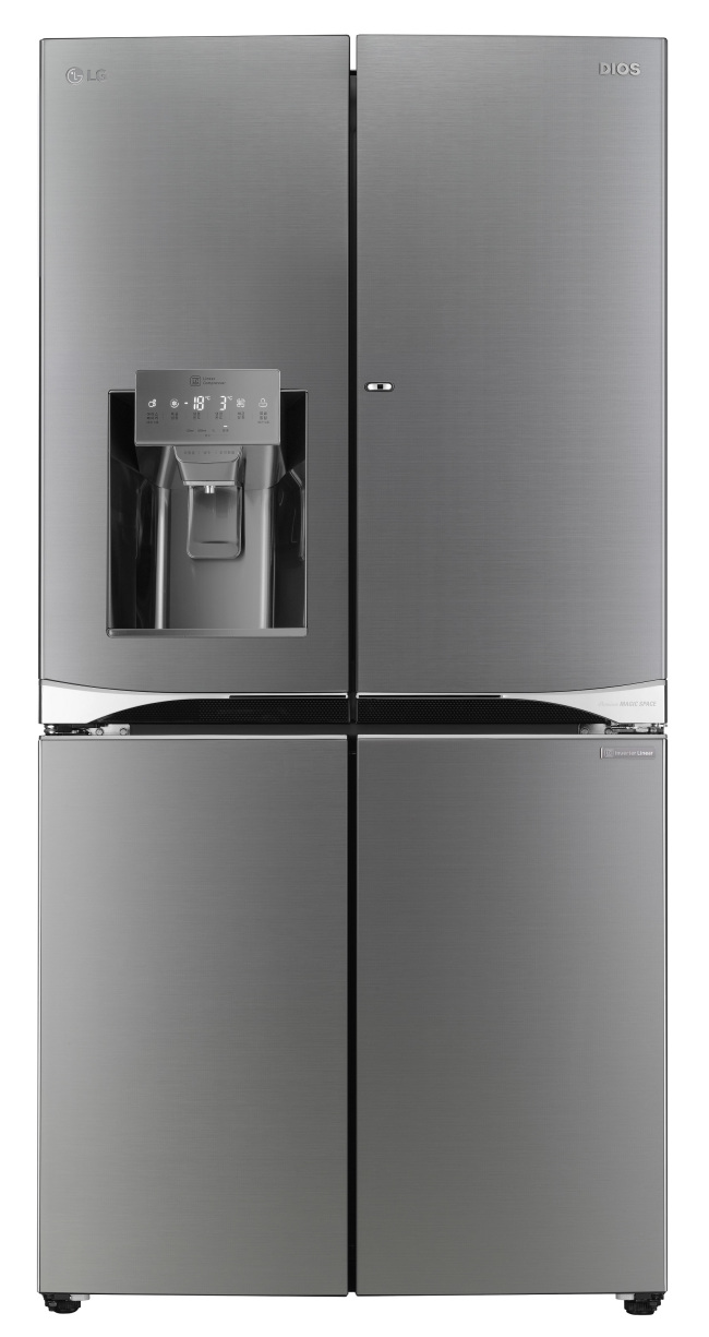 디오스 얼음정수기 냉장고는 LG냉장고 만의 매직 스페이스 냉장고에 얼음 정수기를 결합했다. 883리터의 상냉장·하냉동 타입으로 스테인리스 소재와 3단계 안심필터, 정기 케어 서비스 등을 통해 깨끗한 물과 얼음을 제공한다는 설명이다. 디스펜서 상단 터치패널에서 120밀리리터(mL)와 500mL, 1리터(L) 중 원하는 용량 버튼을 터치하면 선택 용량 만큼 출수된다.