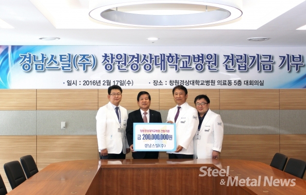 포스코 가공센터 경남스틸 최충경 회장은 창원경상대학병원 건립기부금으로 2억원을 기탁했다.