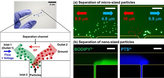 연구팀은 마이크로 칩 내에 들어온 입자에 작용하는 수력학적·전기적 힘에 관한 핵심원리를 밝힘과 동시에 수십 마이크로미터(㎛)에서 수 나노미터(nm) 크기에 이르기까지 다양한 크기의 입자들을 분리하는 데에도 성공했다.