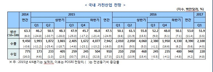 포스코경영연구원이 발표한 1분기 수급전망자료에 따르면 생산지수는 브라질 올림픽 특수와 기저효과에 따른 소비 개선에 힘입어 두 자릿수 증가로 이어질 것으로 보인다.