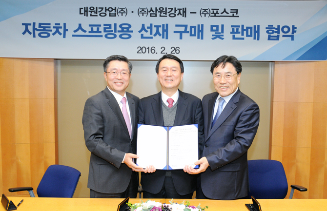 포스코(회장 권오준)가 지난달 26일 자동차 스프링제품을 생산하는 대원강업(회장 허재철)와 선재제품에 대해 전략적 파트너십을 강화키로 하는 양해각서(MOU)를 체결했다.