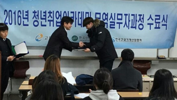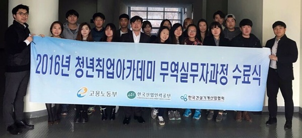 건설기계산업협회는 1월22일부터 약 1달 보름 동안 강남대, 명지대, 수원대에서 청년취업아카데미 무역실무자 양성의 입문과정인 단기과정을 실시하였고 지난 2월29일 수료식을 거행했다.