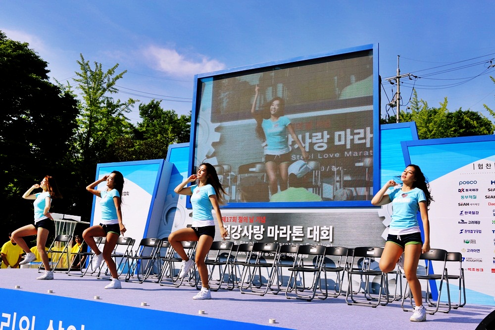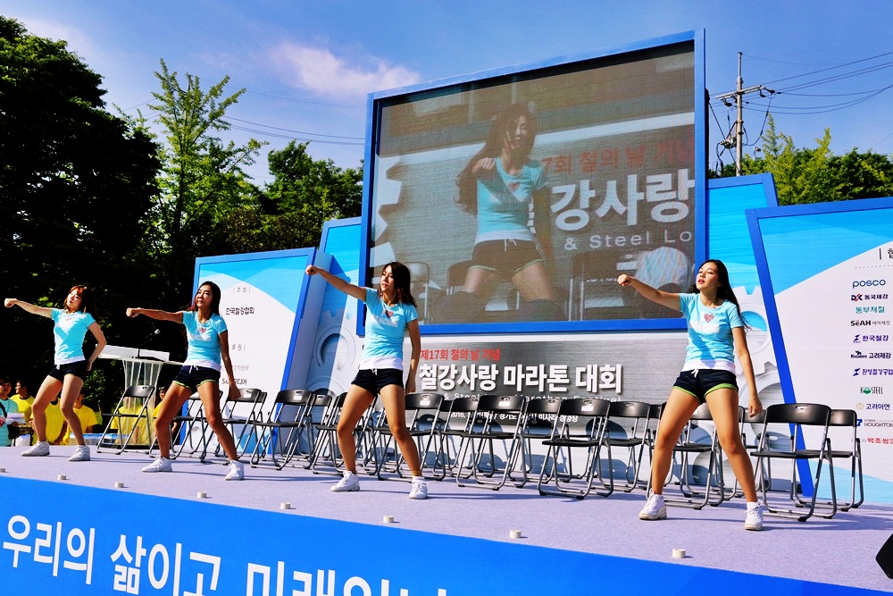 제17회 철의 날 기념 철강사랑 마라톤 대회에서 치어리더팀은 화제의 오디션 서바이벌 '프로듀스 101' 픽미 댄스를 선보여 참가자들의 이목을 집중시켰다.