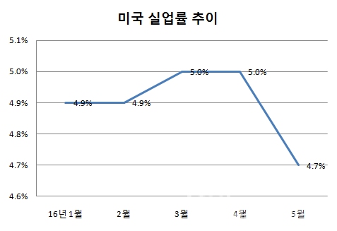 한편 5월 실업률은 4.7%로 안정적인 수준을 유지했다.