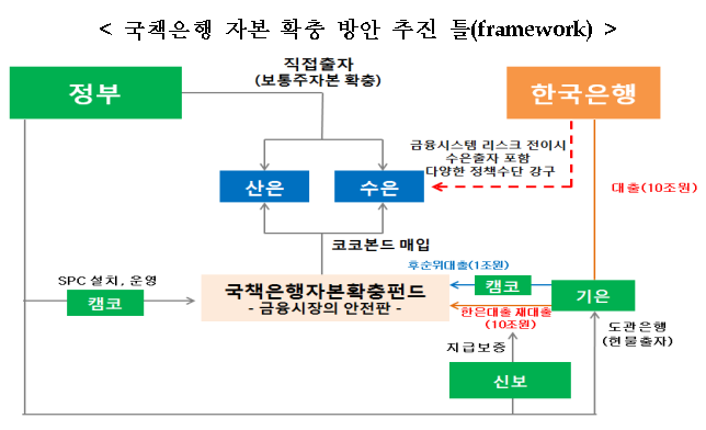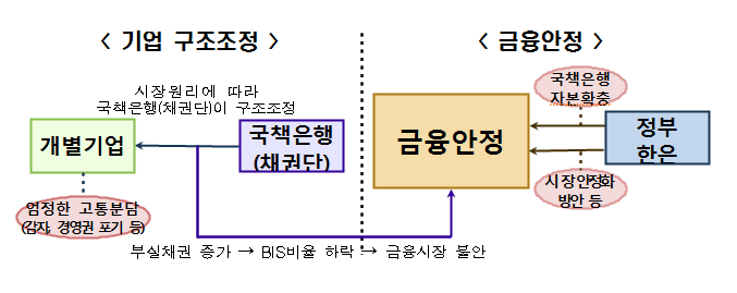 특히 국책은행을 통한 직접출자와 간접출자의 '투 트랙' 방안을 추진하여 기업ㆍ산업 구조조정에 따른 금융권에 미칠 악영향을 최소화 할 방침이다.