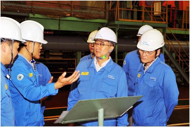 천범녕 사장은 합병 첫 날인 7월 1일 한 식구가 된 옛 포스코AST 안산공장을 찾아 임원 및 직책보임자들과 간담회를 갖고 합병 전 설비 합리화와 인력 구조조정 등 뼈를 깎는 노고에 대해 감사를 표했다.