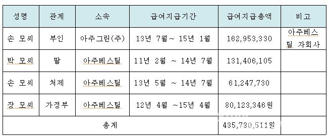 ▲ 아주베스틸 박유덕 대표 가족 취업 내용
