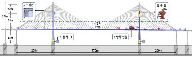 또 '교량 화재 위험도 평가 및 대응체계'를 개발해, 교량별 화재발생 위험도에 따라 소방시설을 단계적으로 설치할 계획이다. 다만, 사고가 발생한 서해대교는 ‘17년 상반기까지 방수총과 泡(포)소화전을 우선 도입한다.