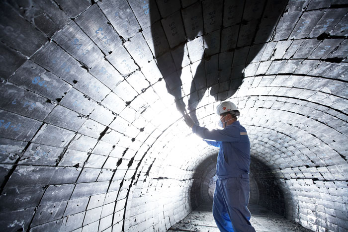 ▲ 화력발전시설 내화물 공사 모습/사진제공 포스코켐텍