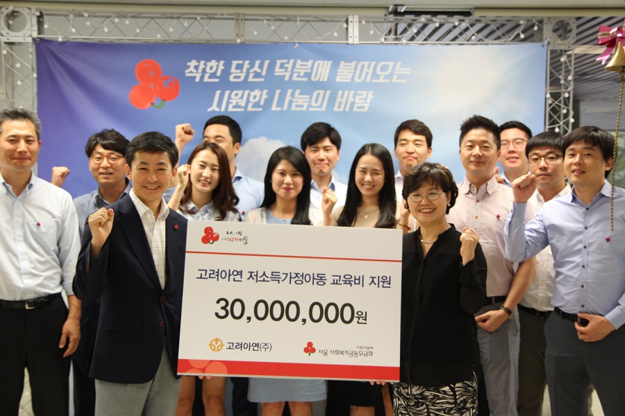 고려아연은 지난 17일 사랑의열매회관에서 서울 사회복지공동모금회(회장 이연배, 이하 서울 사랑의열매)에게 저소득 가정 아동을 위한 교육 지원금을 전달했다.