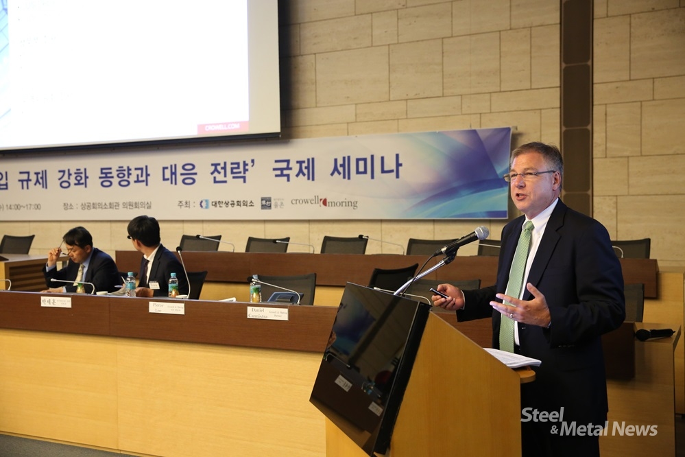 1·2세션에서 ‘미국 무역구제 동향과 사후 대책’이라는 주제의 강연에 나선 대니얼 캐니스트라(Daniel Cannistra) 변호사는 한국산 철강제품 등에 대한 미국의 최근 무역구제 사례를 소개하며 강연을 시작했다.