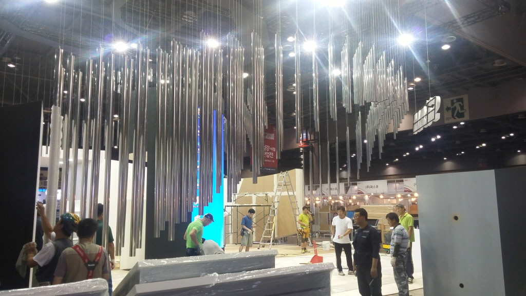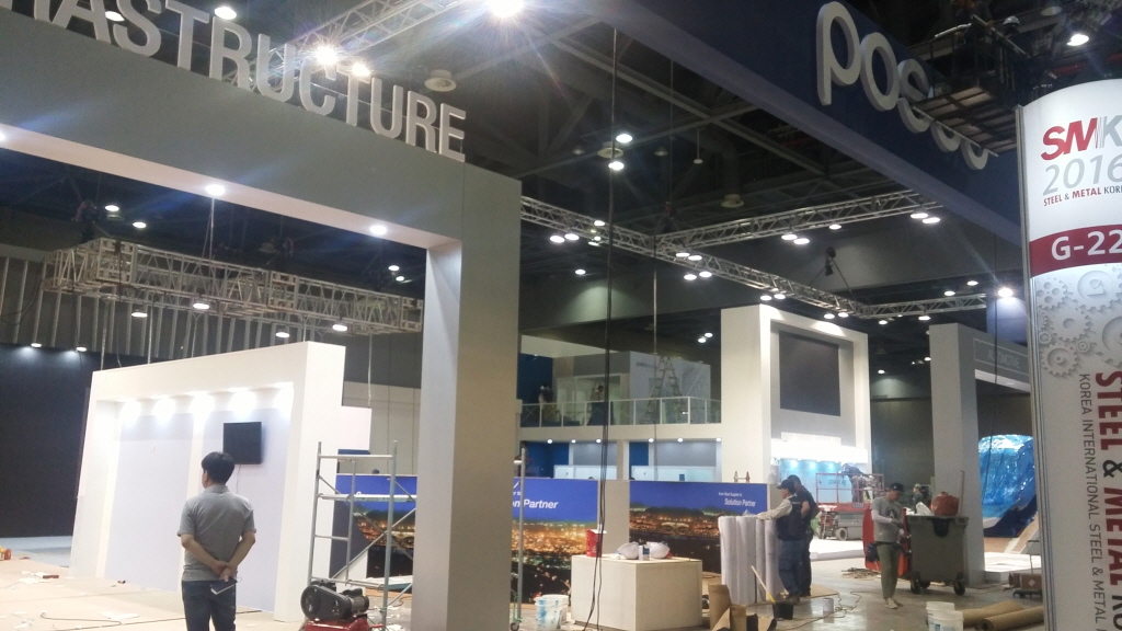 26일 방문한 고양시 킨텍스(KINTEX) 전시장은 국제철강ㆍ금속산업전(SMK2016) 개막을 하루 앞두고 각 참가업체마다 전시부스 디자인 마무리 작업에 한창이다.