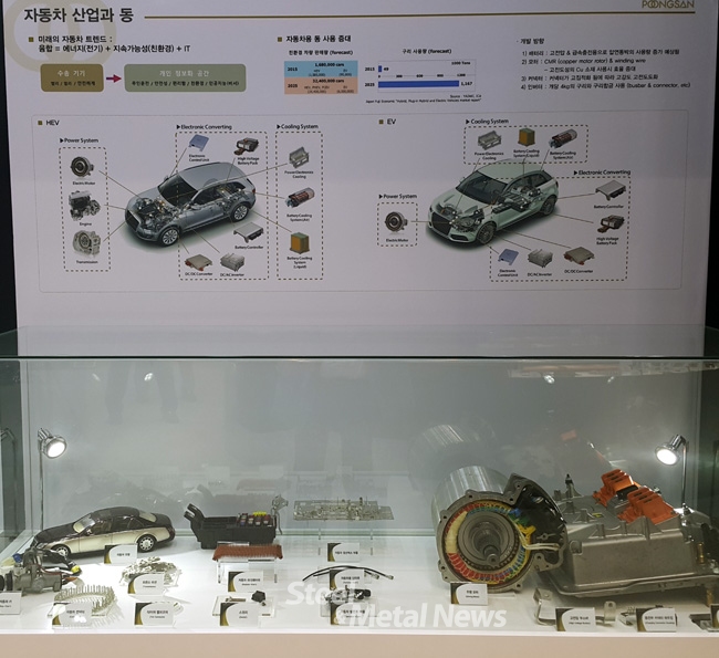 27일 개막된 '국제철강금속산업전(SMK 2016)'. 세계적인 신동기업인 풍산(회장 류진)은 ‘메가트렌드와 풍산’이라는 컨셉으로 원소재에서부터 자동차 부품 소재, 친환경 소재, IT 소재, 에너지 소재 등을 선보이고 있다.