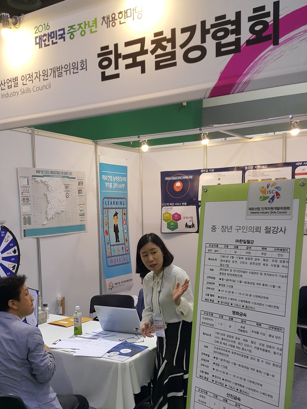 한국철강협회 재료산업인적자원개발위원회(이하 재료ISC)가 퇴직 숙련 기술자들의 재취업에 팔을 걷어 붙였다. 26일 양재동 AT센터에서 개최된 '2016 대한민국 중장년 채용한마당'(주최 고용부, 주관 노사발전재단)에 참가해 중장년 채용을 도운 것.