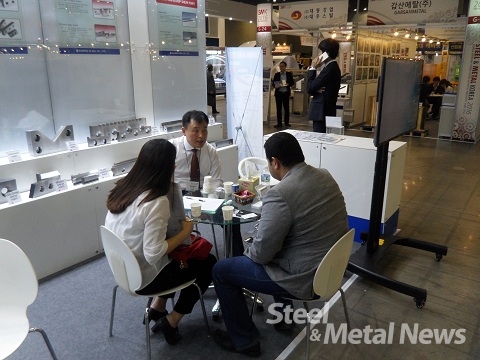 산업용 나이프 제조업체 대원인물(대표 최도현)이 일산 킨텍스에서 열린 철강금속산업전에서 이집트의 한 철강업체와 수출 상담을 진행했다.