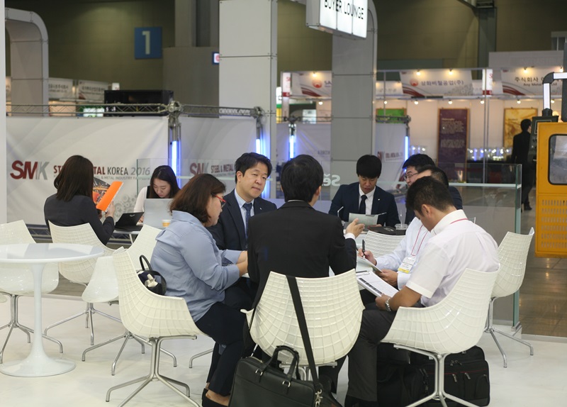 28일 철강금속산업전에서 공식적으로 열린 수출·구매 상담회에 바이어들이 방문, 제품 구매 상담이 이뤄졌다.