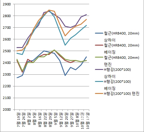 | H형강(200*100) | 상하이 | 2,720 | 2,790 | 2,810 |