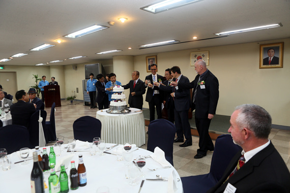 이날 행사에는 신규 열간 압연기를 비롯한 설비 업체 관계자와 알루미늄 포일(Foil) 업체 임원진 등 고객사 관계자 90여 명과 조일알미늄 임직원 20여 명을 포함한 110여 명이 한자리에 모여 조일알미늄의 새로운 시작을 축하했다.
