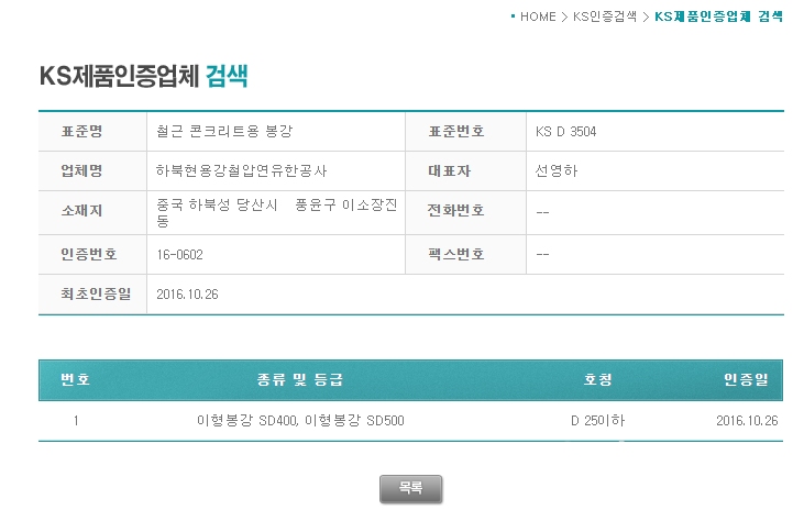 한국표준협회 자료에 따르면 중국 당산시 소재 하북현용강철압연유한공사(이하 ‘현용강철’)가 10월 26일자로 철근 KS인증을 취득한 것으로 확인됐다.