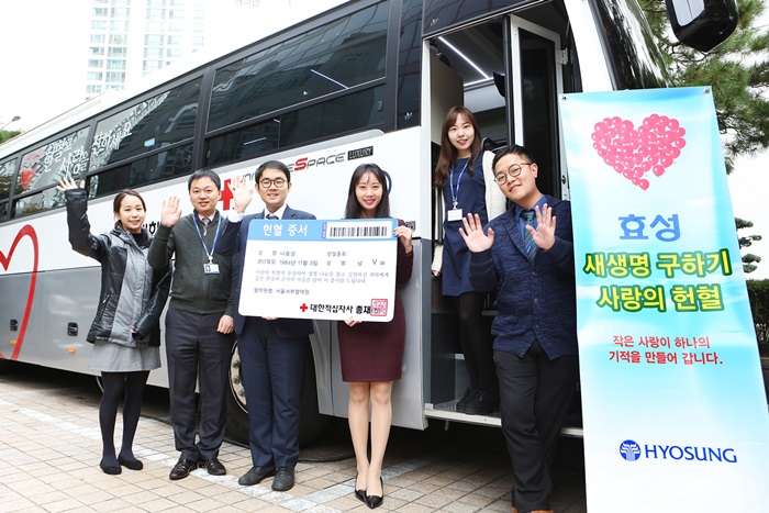 한편, 효성은 2005년부터 대한적십자사 용산마포봉사센터의 밑반찬 나눔 사업을 12년째 후원하고 있으며, 지난 2012년에는 혈액관리본부에 ‘사랑의 헌혈버스’를 제작해 기부하는 등 나눔 문화 확산을 위한 노력을 지속하고 있다.