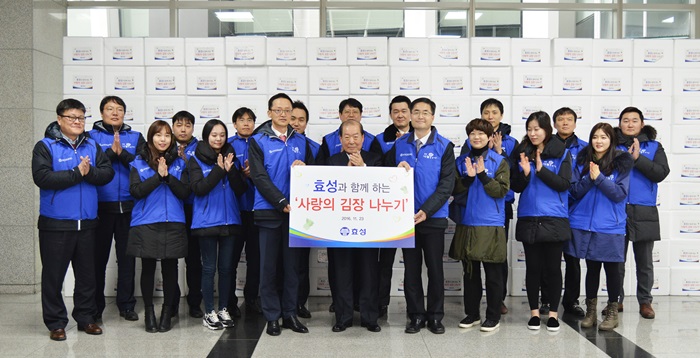 효성은 23일 마포구청과 함께 10kg들이 ‘사랑의 김장김치’ 1,500박스를 효성 본사가 위치한 마포구 저소득층 가정에 전달했다.