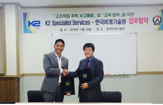 K2는 싱가포르에 본사를 둔 국제산업로프작업협회(IRATA)의 공식 훈련기관으로, 20여년간 쉘, 쉐브론, BP, 엑손 등 석유메이저와 글로벌 건설·전력회사와 협력한 선진경험을 축적하고 있다.
